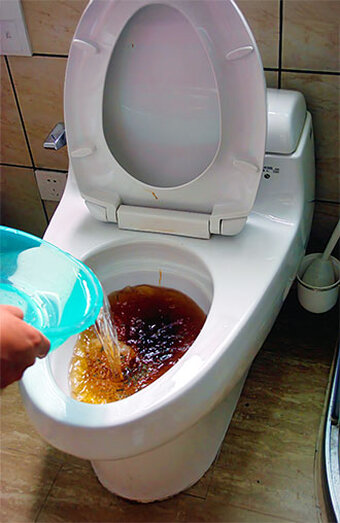 Restoration of proper flushing pressure by fixing toilets that drain slowly due to partial clogs in the trap, junction, or further down the sewer line.